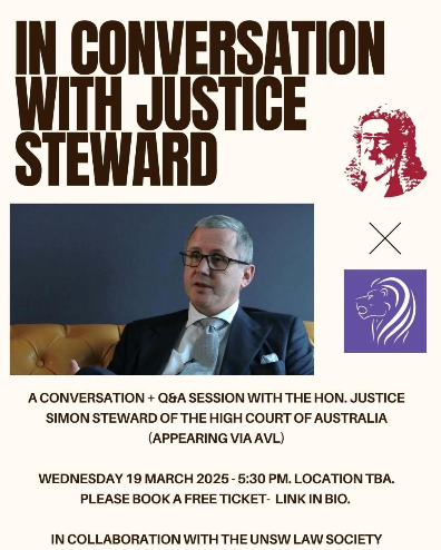 On 19 March 2025 our UNSW Campus Chapter held an even with The Honourable Justice Simon Steward of the High Court of Australia.
